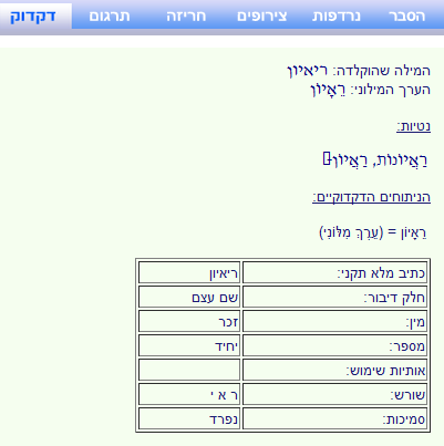 ואני תמיד חשבתי שאומרים ברבים REAYONOT (ולא RAAYONOT שנישמעת כמו רעיונות.)תודה על המידע.