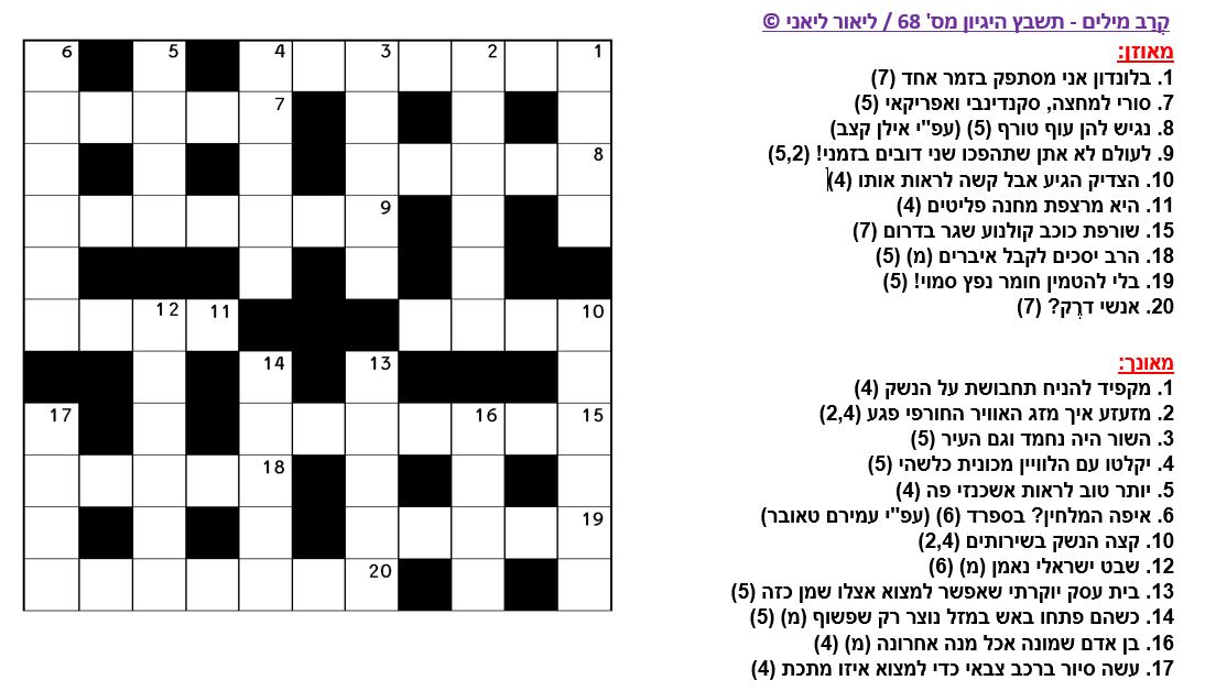 הזוכה בפתרון תשבץ היגיון מס' 67: נטע שטיינברג
