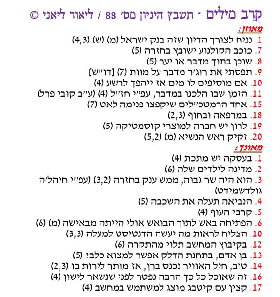 קרב מילים – תשבץ היגיון מס' 83/ ליאור ליאני © » תשבץ היגיון 83